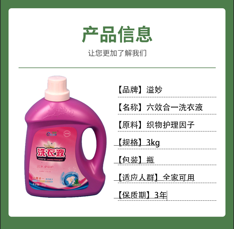 溢妙六效合一家用洗衣液3kg装不伤手的洗衣液